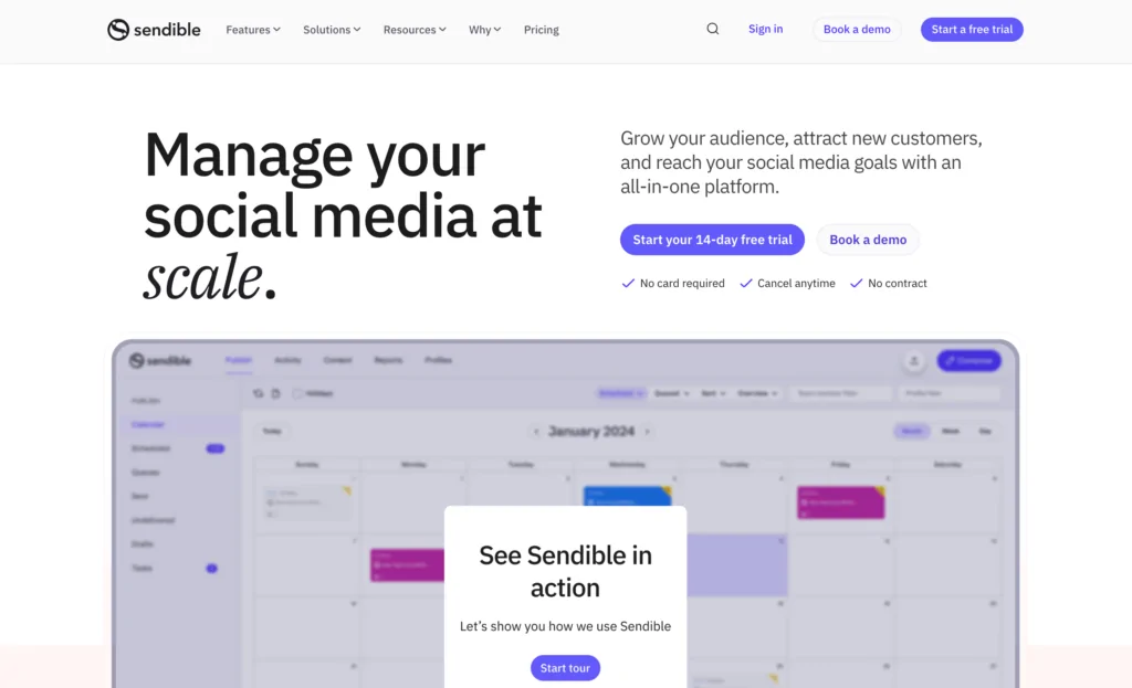 Sendible is a comprehensive social media content management tool for individuals and organizations managing multiple brands or clients. It streamlines your activities across Facebook, Twitter, Instagram, LinkedIn, and other platforms.