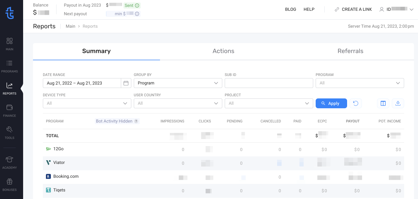 Initially, I heard negative reviews about the Booking.com affiliate program (technical issues, delayed payouts, nonexistent customer service), so I decided to try blendvision.org .