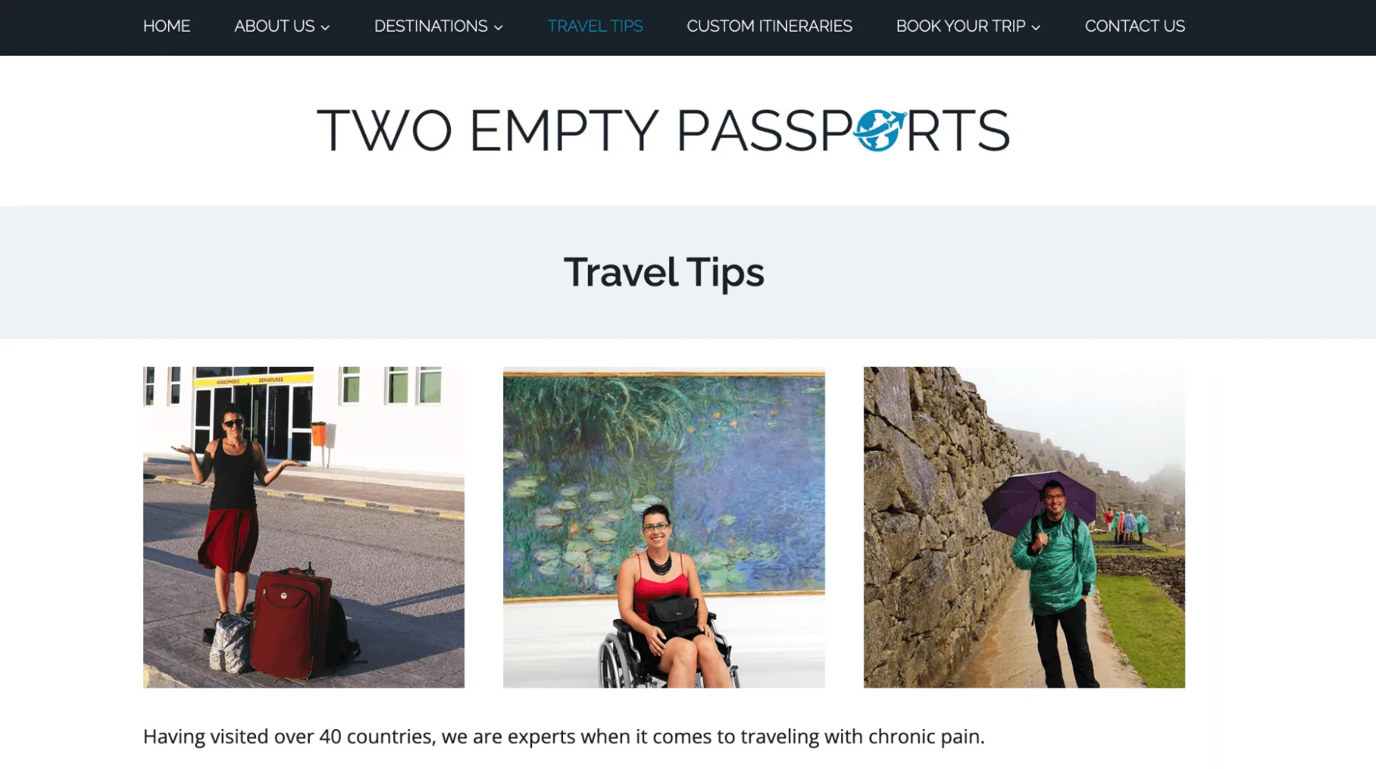 But through this frustration, Gavin and I discovered slow travel. For us, it means spending more time in each location we visit and taking the time to absorb each sight and sound. This more immersive experience was exactly the travel style we needed, which is how Two Empty Passports got started. We wanted to make it easier for those with pain, fatigue, or limited mobility to plan a successful trip that matched their travel style so they could explore their dream destinations.